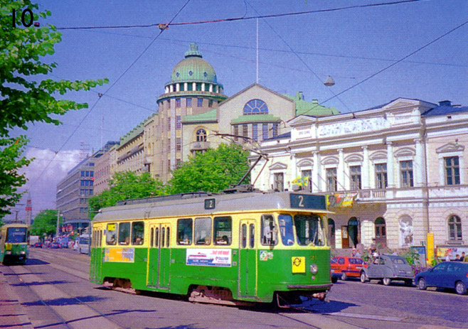 Helsinki: Neliakselinen vaunu 21 vuodelta 1959 Mannerheimintiellä linjalla 2, 7/01.