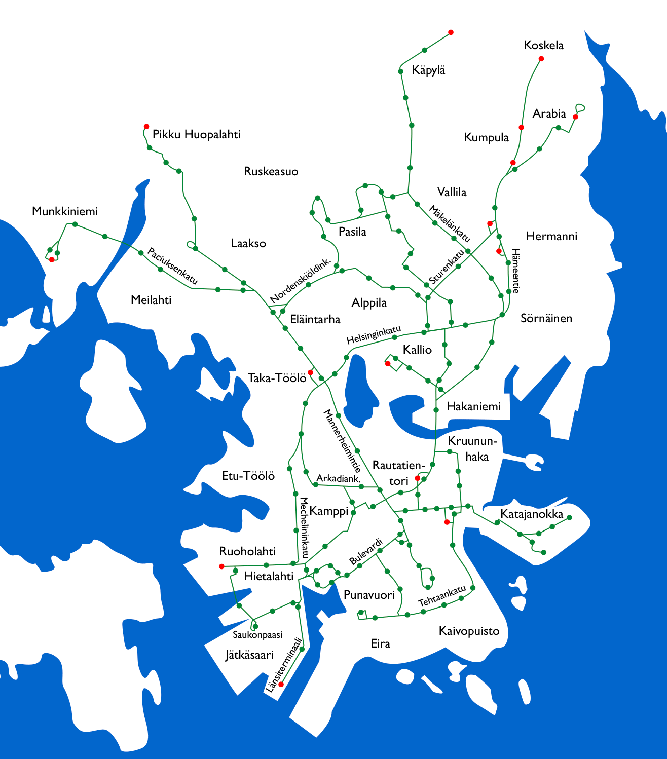 oma reittisi kartan avulla! Punaisella pysäkillä vaunu voi seistä