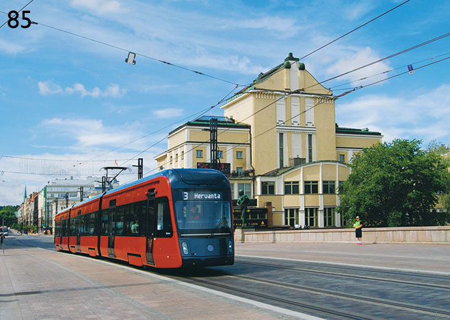 Tammerfors: Škoda-Transtechs ledvagn 09 från år 2021 på Hämeensilta på linje 3. Fotograferad 7/21.