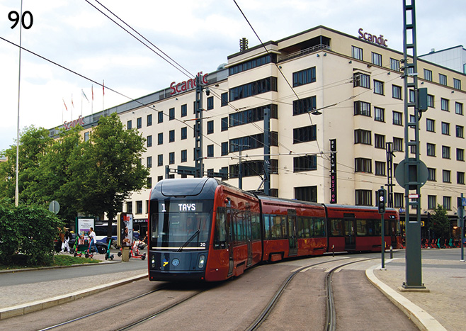Tammerfors: Škoda-Transtechs ledvagn 20 från år 2021 på Hämeenkatu på linje 1. Fotograferad 8/22.